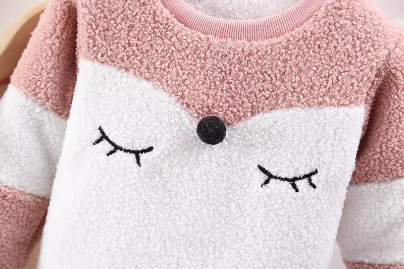 Girls Lamb Cartoon Red And White Velvet Sweaters With Foxes On Them Images |