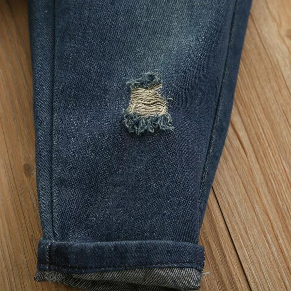 130CM Boys 6 Years Outfit Sets Black Hooded Jacket Dark Blue Ripped Jeans Images |